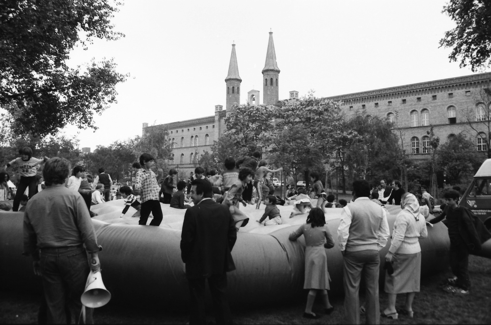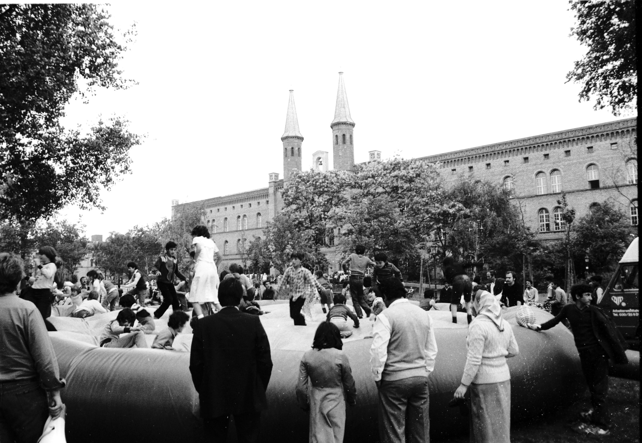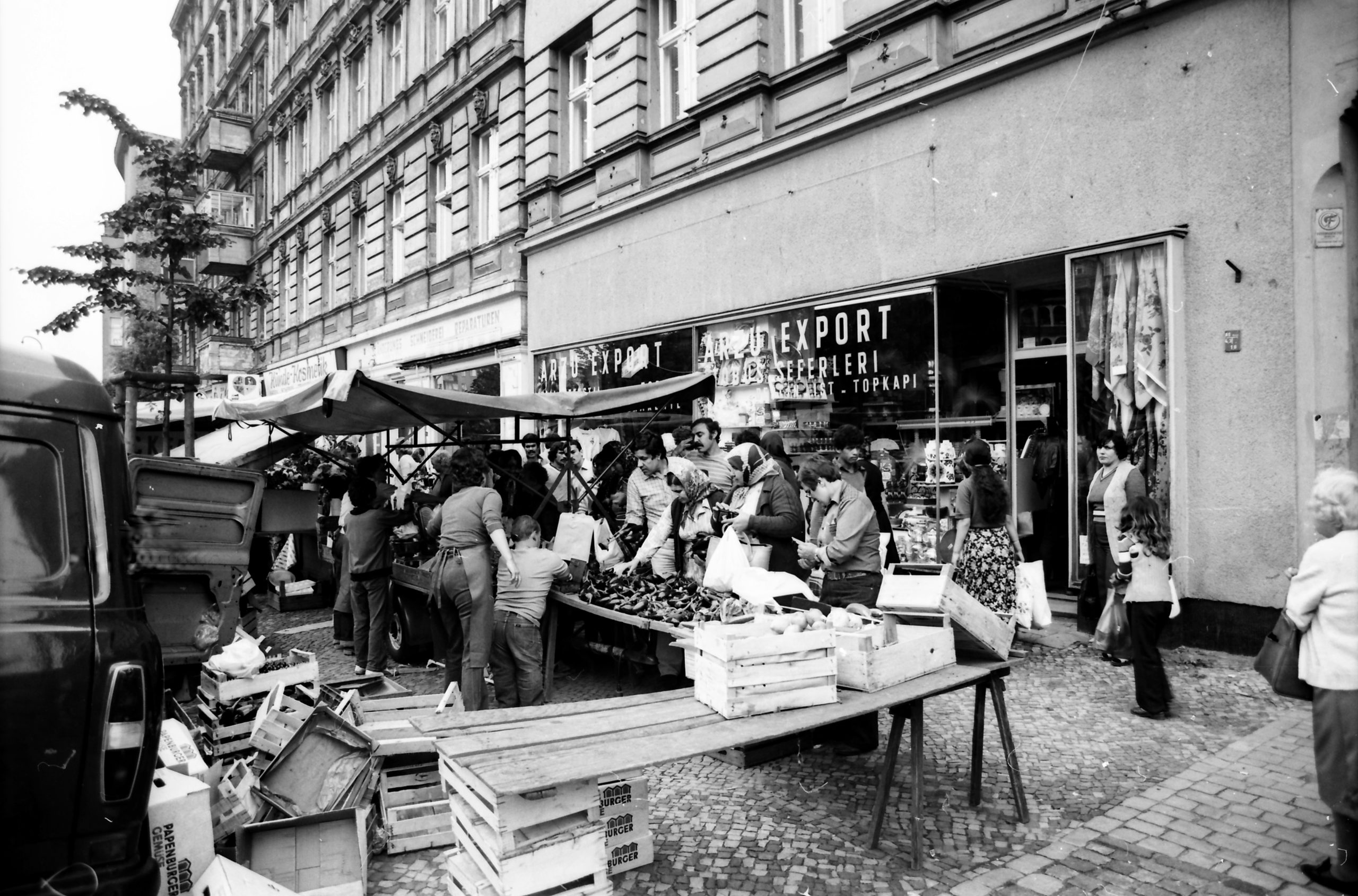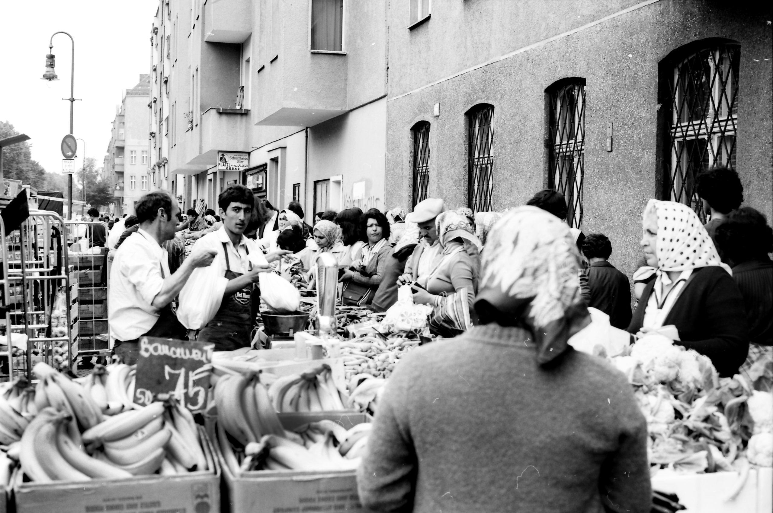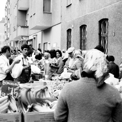 KreuzbergKreuzberg, das war in den siebziger Jahren vor allem billiger Wohnraum. Dunkle Hinterhöfe, heruntergekommene Wohnungen, oft mit Außentoiletten, der Abriss schien beschlossene Sache. Vermietet wurden diese Wohnungen in der Zwischenzeit an Arbeitskräfte, die im Ausland angeworben wurden und die seit den sechziger Jahren als „Gastarbeiter“ auch nach Berlin kamen. Sie prägten den Bezirk nach und nach neu, holten ihre Familien nach. Türkische Lebensmittelläden und Imbisse eröffneten, auf den Höfen, auf den Trümmergrundstücken und in den Straßen spielten wieder Kinder. An den Grundschulen im Südosten Kreuzbergs gab es bald mehr türkische als deutsche Schülerinnen und Schüler. Auf dem Mariannenplatz wurde mit türkischer Folklore gefeiert.
